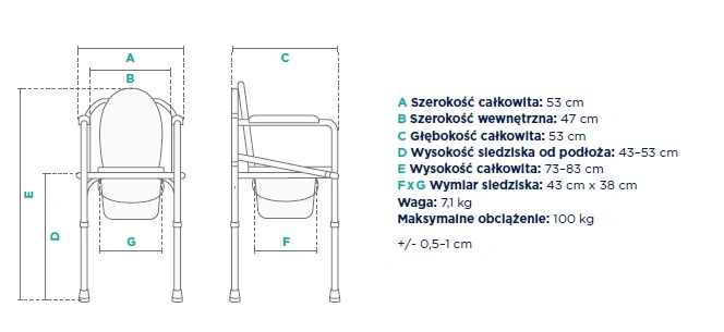 Krzesło toaletowe FS 894 stanowi niezastąpione wsparcie dla osób z problemami z samodzielnym poruszaniem się, dysfunkcjami ruchowymi oraz dla tych, które utraciły zdolność do samodzielnego siadania i wstawania. To praktyczne urządzenie ułatwia wykonanie codziennych czynności sanitarnych.