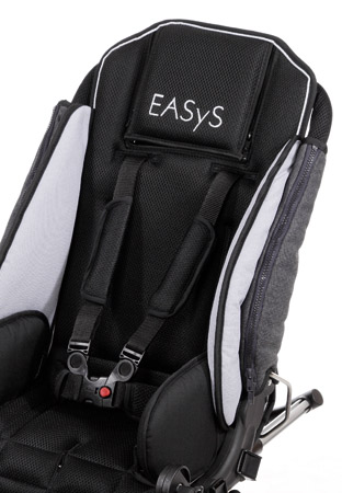 Pas 4 - punktowy (szelki) zabezpiecza tułów dziecka przed wysunięciem się i wychyleniem z wózka.