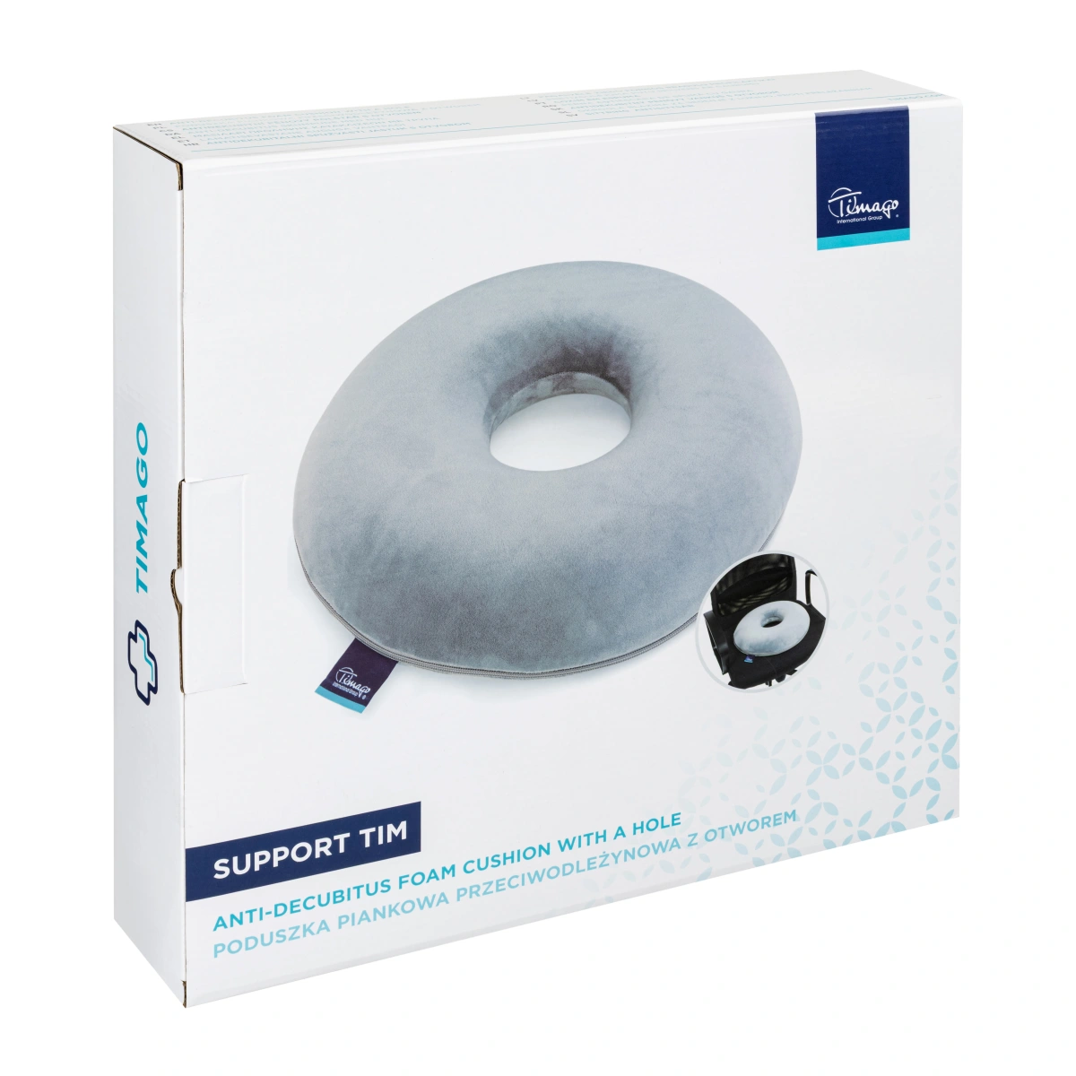 Poduszka piankowa przeciwodleżynowa z otworem SUPPORT TIM to specjalistyczna poduszka wykonana z pianki z pamięcią kształtu poprawia komfort siedzenia, zapewniając podparcie i odciążenie kręgosłupa oraz miednicy, zmniejszając ryzyko powstawania odleżyn.
