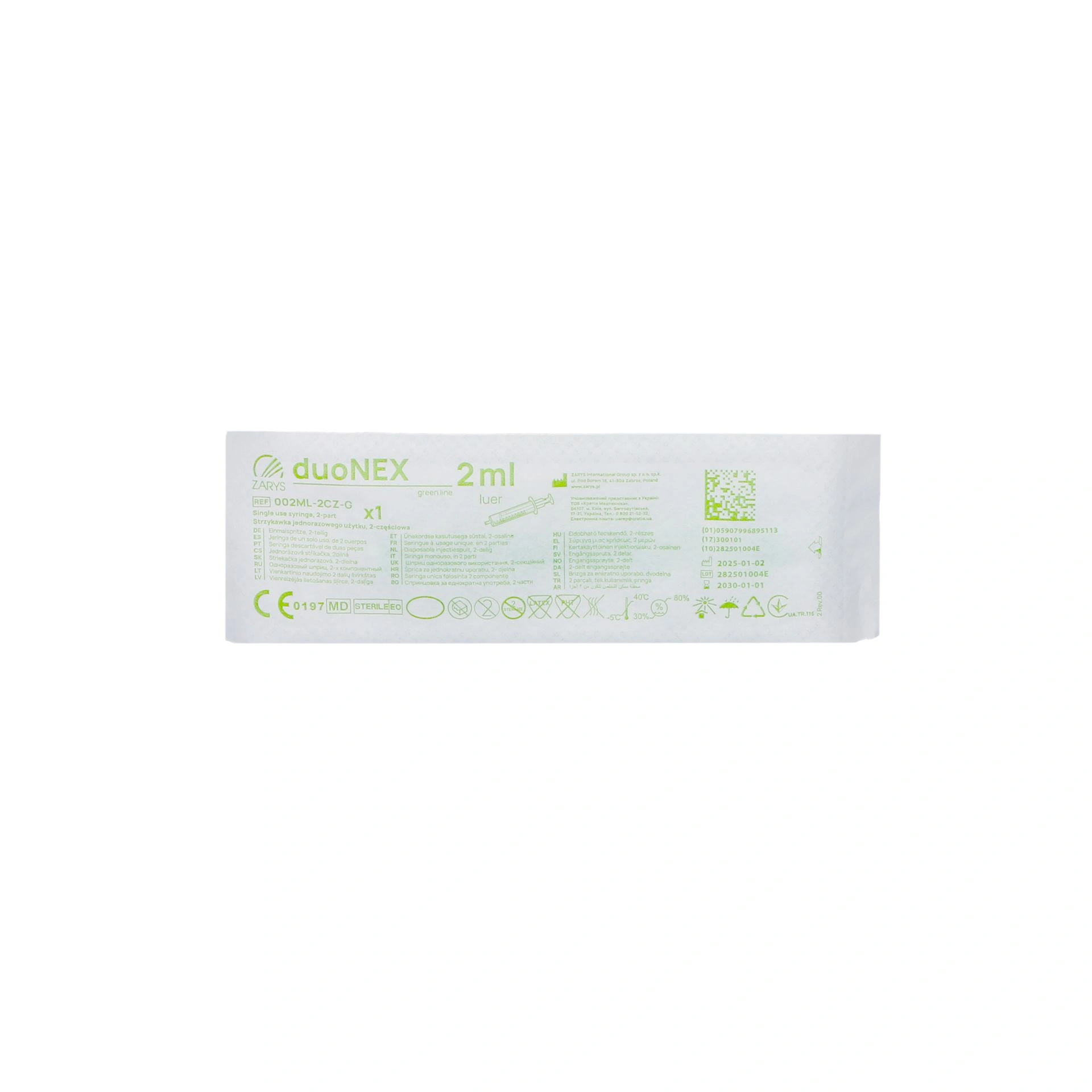 Strzykawka dwuczęściowa jednorazowego użytku Luer duoNEX, pojemność 2 ml