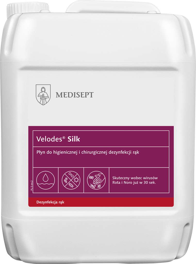 Velodes® Silk to alkoholowy, gotowy do użycia produkt przeznaczony do higienicznej i chirurgicznej dezynfekcji rąk w obszarze